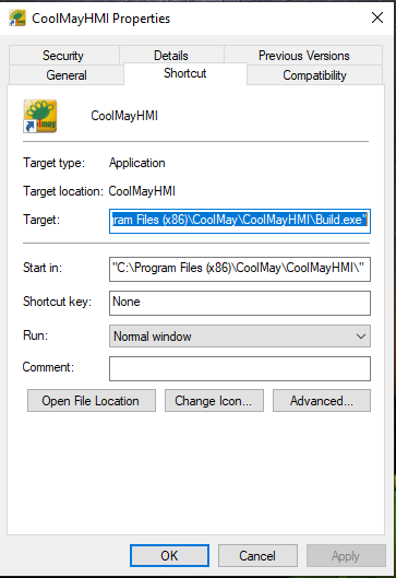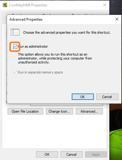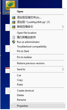 11. Driver cần cho quyền hoạt động bởi Administrator, click chuột phải biểu tượng CoolmayHMI trên desktop, chọn Properties