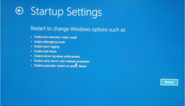 4. Sau khi máy tính khởi động, màn hình máy tính sẽ hiển thị như bên dưới [Startup settings]