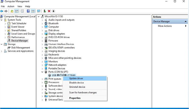 management, Device Manager, [USB serial device] hiển thị trong mục [ports], click chuột phải, sau đó click [update driver]: