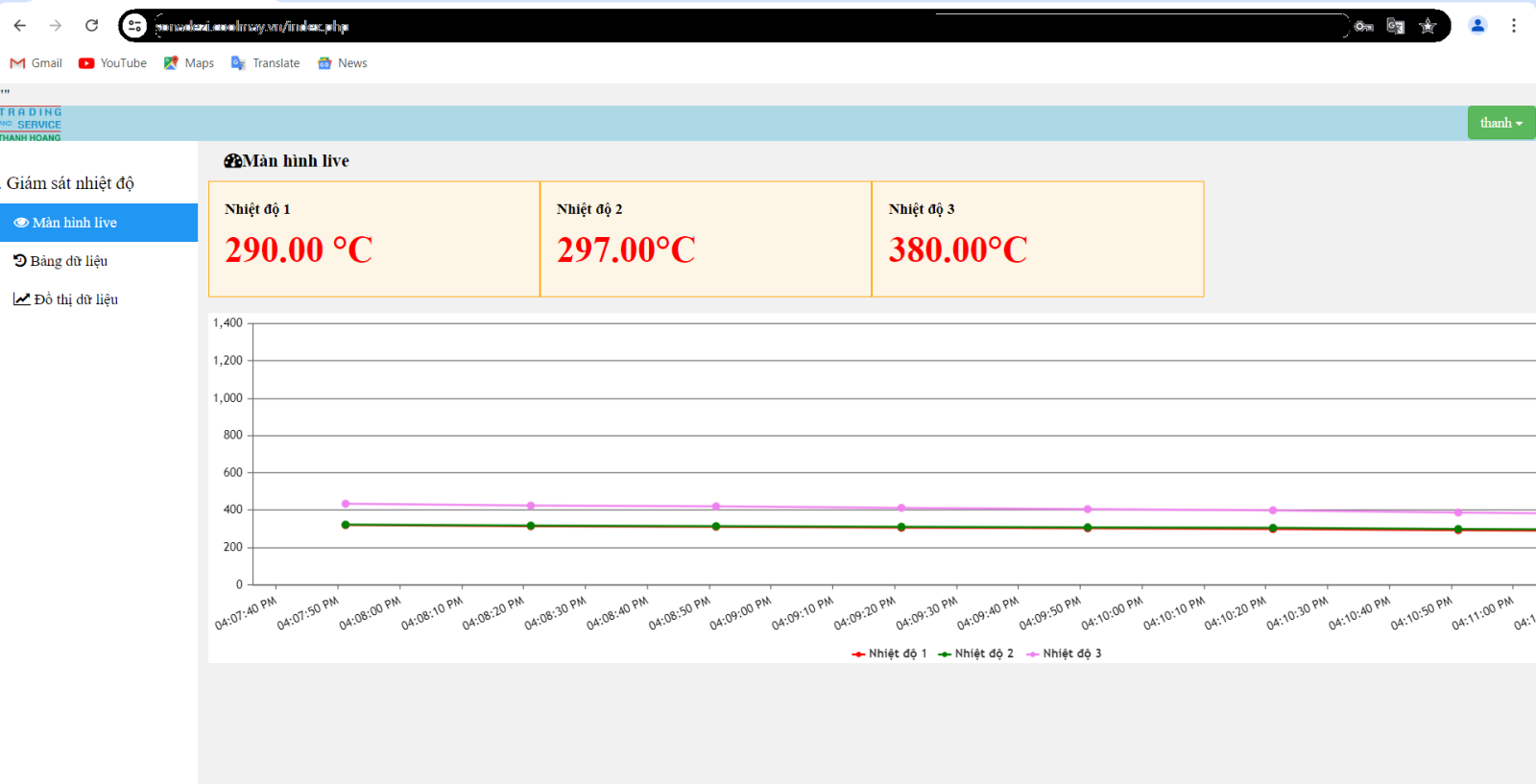 👉 Trang hiển thị giá trị hiện tại: Trang này hiển thị giá trị nhiệt độ hiện tại được đo bởi các cảm biến.